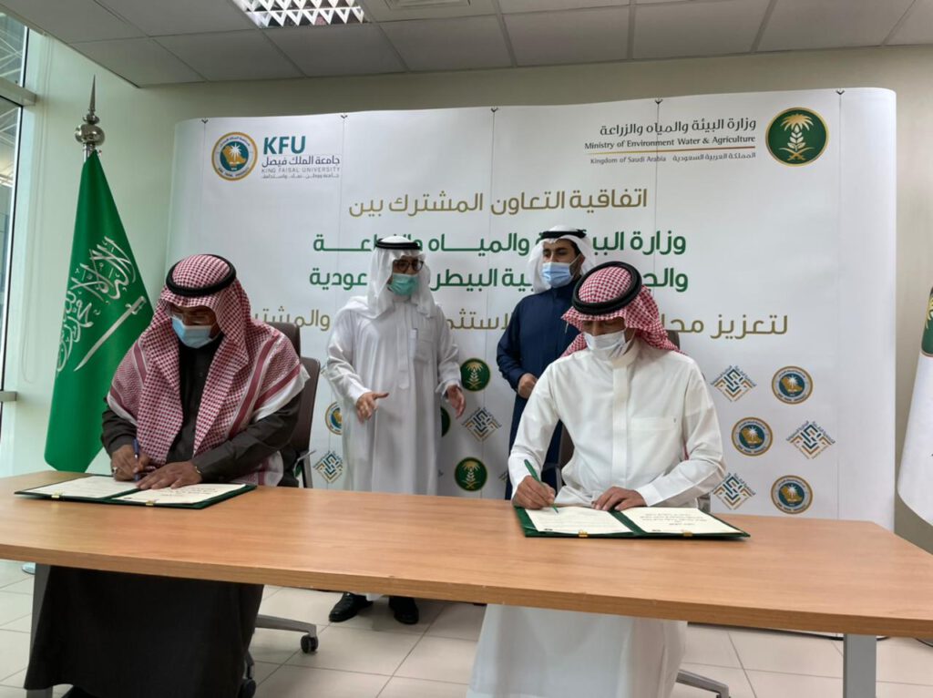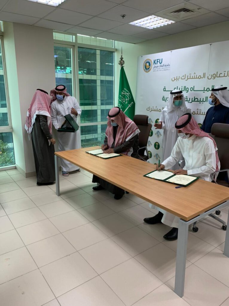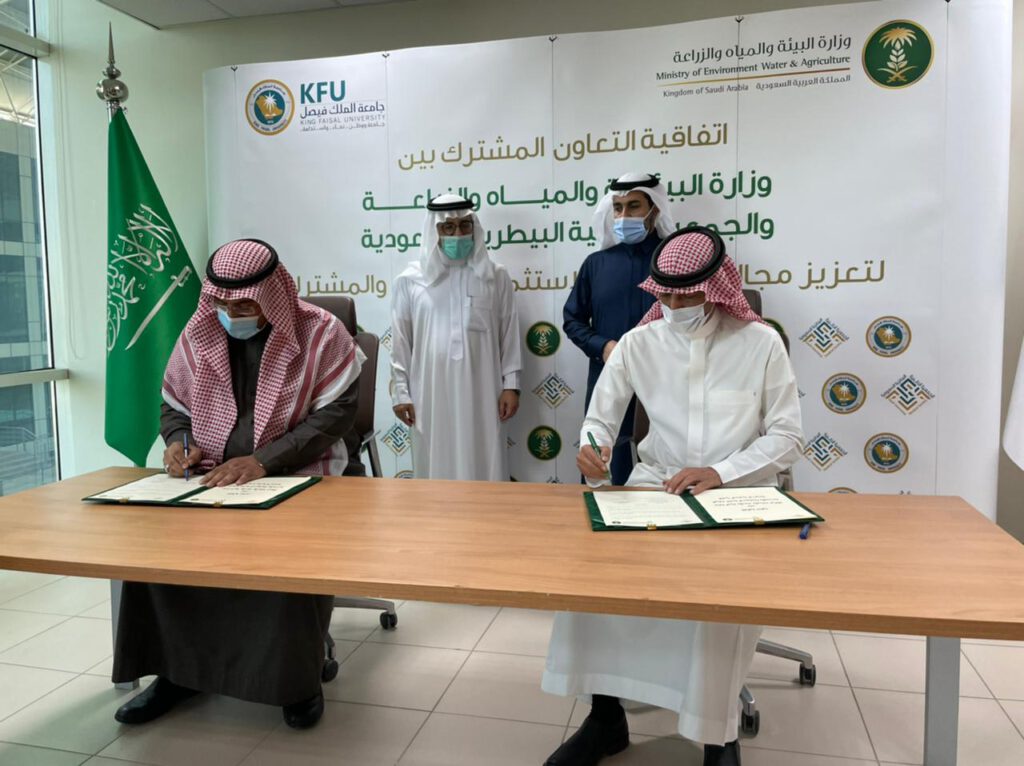 بحضور معالي نائب وزير البيئة والمياه والزراعة المهندس منصور بن هلال المشيطي، ومعالي رئيس جامعة الملك فيصل الدكتور محمد بن عبدالعزيز العوهلي، تم يوم الخميس 20-7-1442هـ توقيع اتفاقية تعاون مشتركة بين الوزارة والجمعية الطبية البيطرية السعودية بمقر الوزارة؛ وتهدف الاتفاقية إلى تحقيق التعاون والتكامل في خدمة المجتمع، وتلبية تطلعات القيادة الرشيدة بتحقيق رؤية 2030.